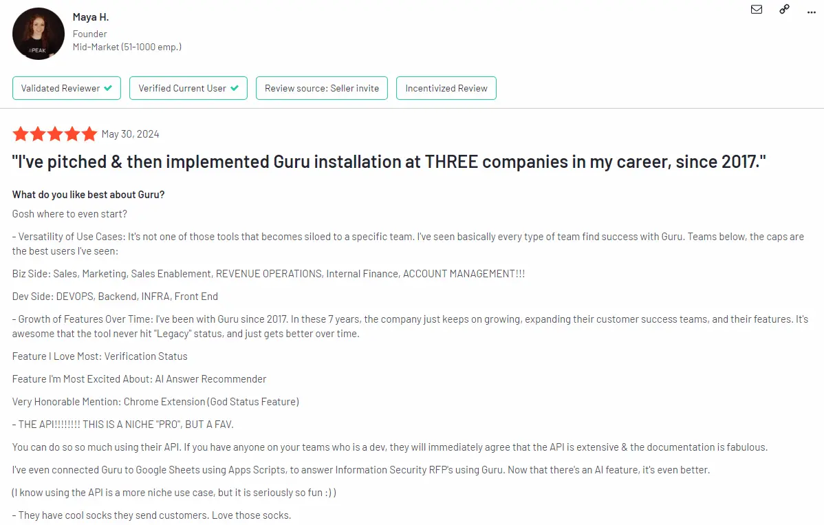 Podemos ayudar aún más al decirte que Guru, una herramienta líder en gestión del conocimiento y búsqueda de IA empresarial, es la que necesitas para agilizar tus flujos de trabajo y aumentar tu productividad.